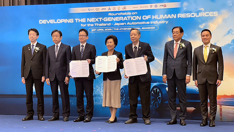 29 เมษายน 2568 : รองศาสตราจารย์ปราณี จงสุจริตธรรม นายกสมาคมส่งเสริมเทคโนโลยี (ไทย-ญี่ปุ่น) Mr. YOSHIDA Yasuhiko, President of The Association for Overseas Technical Cooperation and Sustainable Partnerships (AOTS) และ รองศาสตราจารย์รังสรรค์ เลิศในสัตย์ อธิการบดีสถาบันเทคโนโลยีไทย-ญี่ปุ่น ร่วมลงนามข้อตกลงความร่วมมือ MEMORANDUM OF UNDERSTANDING FOR COMPREHENSIVE MUTUAL COOPERATION โดยมี Mr. MUTO Yoji, รัฐมนตรีกระทรวงเศรษฐกิจ การค้า และอุตสาหกรรม ของญี่ปุ่น Mr. HAYAKAWA Shigeru ประธานคณะกรรมการความร่วมมือทางเศรษฐกิจไทย- ญี่ปุ่น คุณพิชัย ชุณหวชิร รองนายกรัฐมนตรี และรัฐมนตรีว่าการกระทรวงการคลัง และคุณเอกนัฏ พร้อมพันธุ์ รัฐมนตรีว่าการกระทรวงอุตสาหกรรม ของไทย เป็นสักขีพยาน