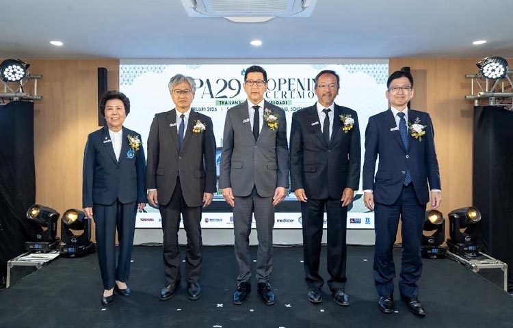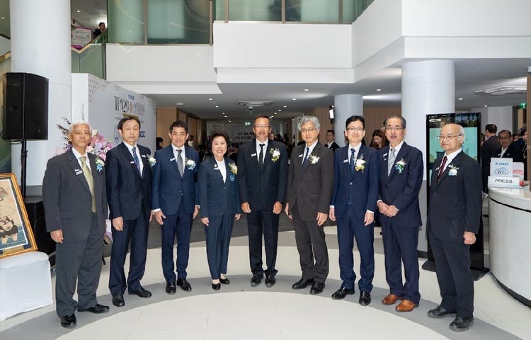 ฯพณฯ สมหมาย ฮุนตระกูล อาจารย์โกอิจิ โฮซูมิ และคุณวารี พงษ์เวช ร่วมพิธีเปิดที่ทำการแห่งแรก ณ อาคารอื้อจือเหลียง วันที่ 24 พฤษภาคม 2516