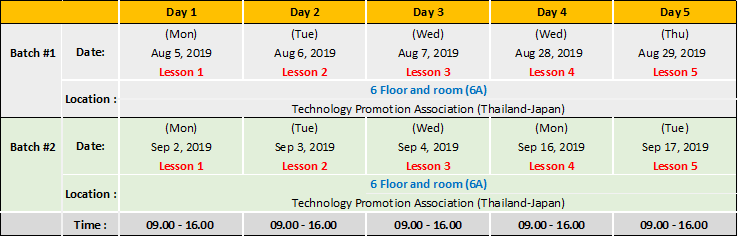 For Monodzukuri Test 2019 in Thailand, please check the schedule below.
