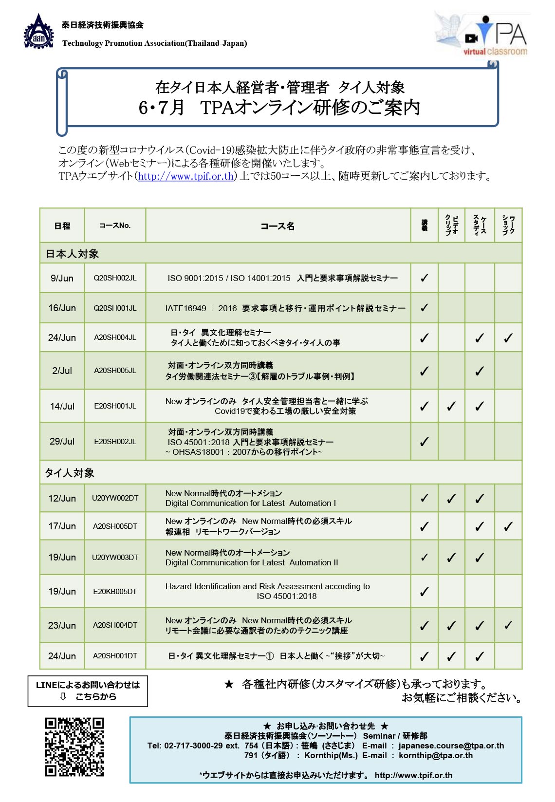 この度の新型コロナウイルス(Covid-19)感染拡大防止に伴うタイ政府の非常事態宣言を受け、オンライン(Webセミナー)による各種研修を開催いたします。 各研修とも対面講義と同様、講義内で自由にご質問などしていただけるよう、参加人数10名までの少人数制で実施いたします。