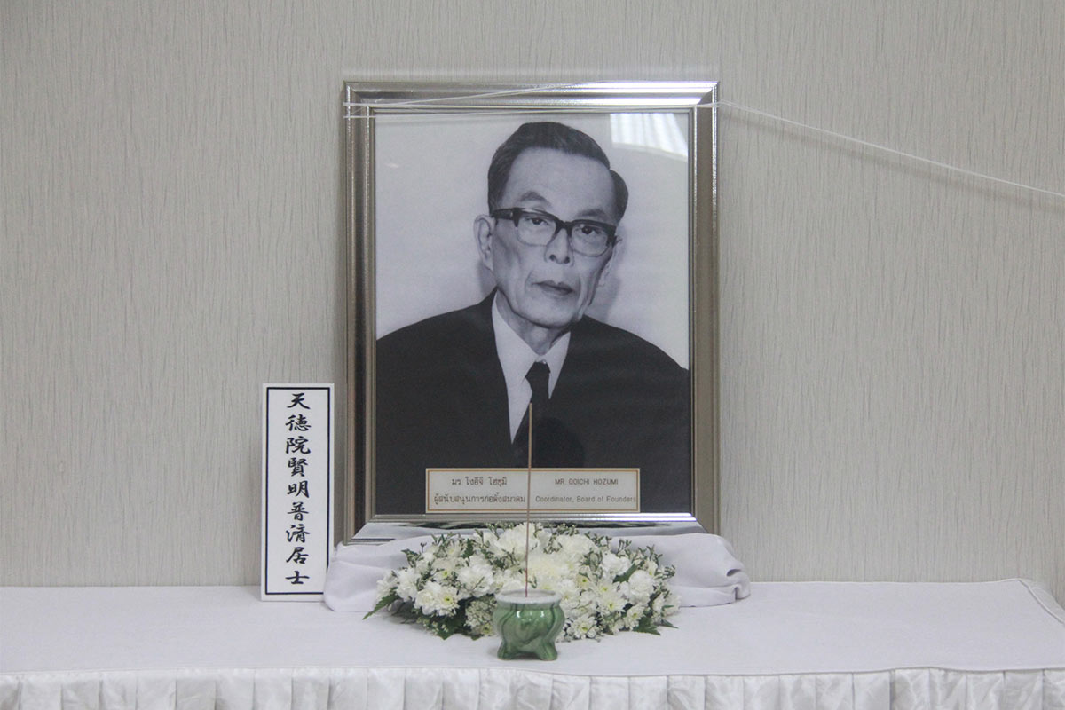 2022年3月25日-泰日経済技術振興協会(TPA)、タイ国ABK・AOTS同窓会、及び泰日工業大学(TNI)の協力の下、泰日経済技術振興協会の設立を支援し尽力された日・タイ経済協力協会(JTECS)初代理事長の穂積五一先生を偲んで、生誕120周年記念のタンブン(法事)を行いました。