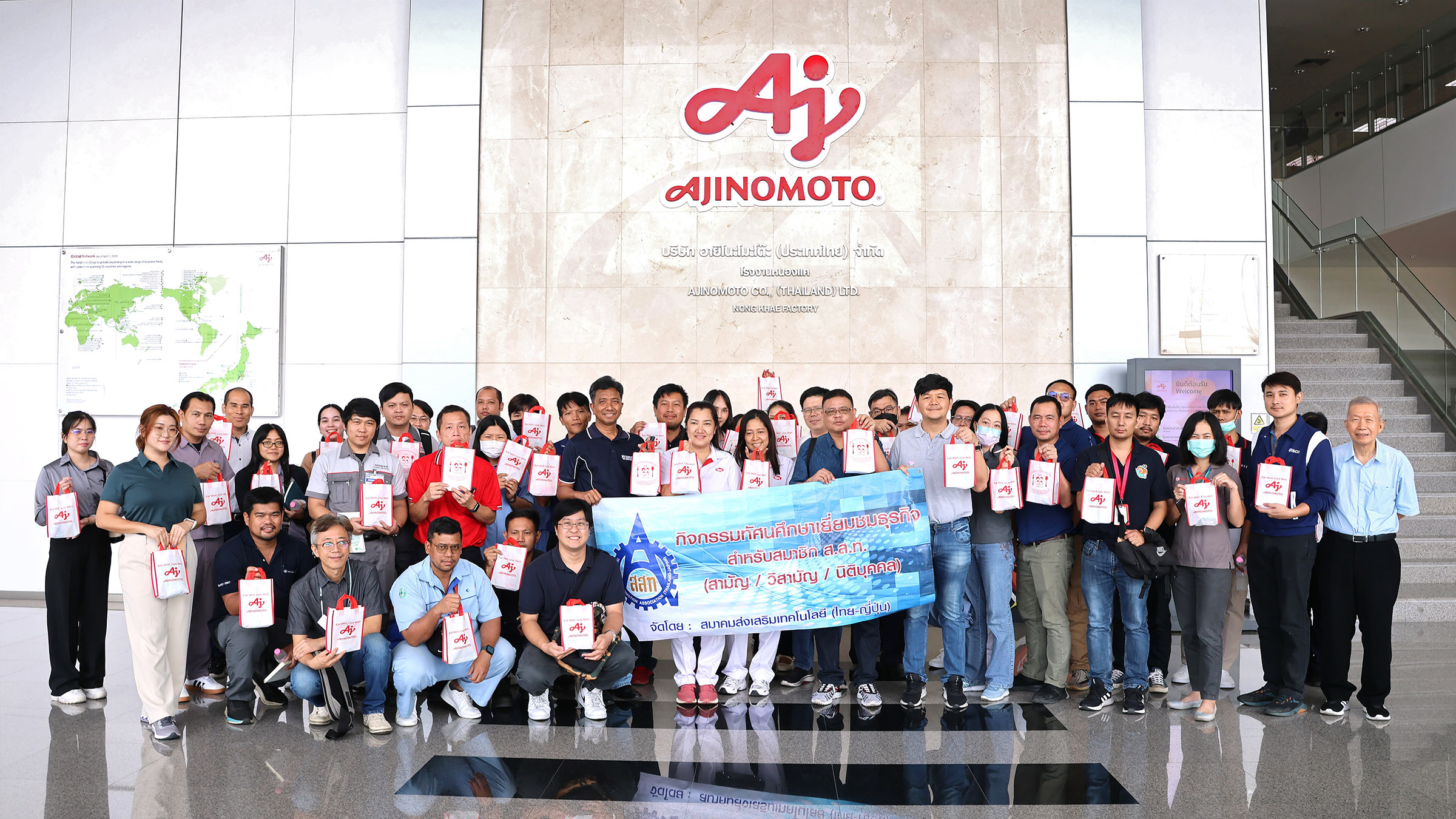 30 สิงหาคม 2567 - สมาคมส่งเสริมเทคโนโลยี (ไทย-ญี่ปุ่น) โดยฝ่ายสื่อสารองค์การและสมาชิก จัดกิจกรรมเยี่ยมชมและศึกษาดูงาน กระบวนการผลิต วัตถุปรุงแต่งรสอาหาร “รสดี” บริษัท อายิโนะโมะโต๊ะ (ประเทศไทย) จำกัด (โรงงานหนองแค จังหวัดสระบุรี) โรงงานแห่งนี้ยังเป็นฐานการผลิต ผลิตภัณฑ์อาหารอื่น ๆ ของบริษัทฯ อาทิ ผงปรุงรสสำเร็จสำหรับใช้ทำอาหารเฉพาะเมนู รสดีเมนู รสดีซุปก้อน รวมถึงเครื่องปรุงรสสำหรับอาหารจีน กุ๊กดู เป็นต้น อีกทั้ง สมาชิกได้เข้าเยี่ยมชมศูนย์เทคโนโลยีทางด้านอาหารที่ทำหน้าที่วิจัยและพัฒนาเกี่ยวกับผลิตภัณฑ์ทั้งในด้านคุณภาพและความปลอดภัยเพื่อส่งมอบสู่ผู้บริโภค