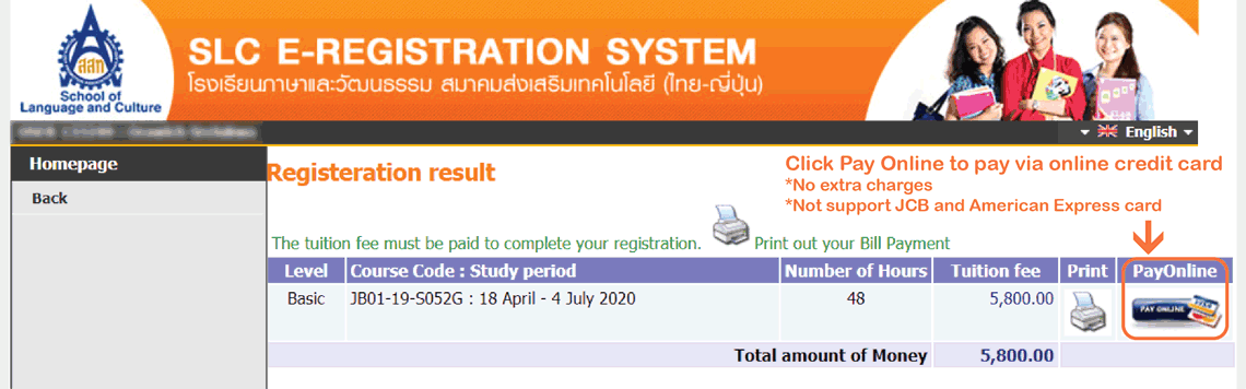 After paying the tuition fee, please inform the staff regarding the receipt at the school public relation, 2nd floor within 15 days after the course has been started, otherwise the school will assume that the student relinquishes the right to obtain the receipt.